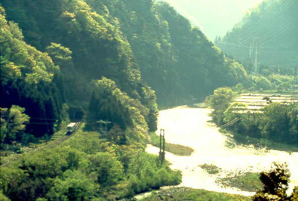て北陸の小京都 越前大野に向かいます。一番列車が峠の最後のトンネルを抜けたころ
