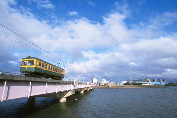 電車は東関屋を出るとすぐに信濃川にさしかかる。たった1両の小さな車両が大きな川をトコトコと渡って行く。 | |
