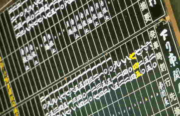 | いまだに漢数字で書かれた珍しい時刻表。(上) 宅急便屋さんにもわかりやすく(左) |