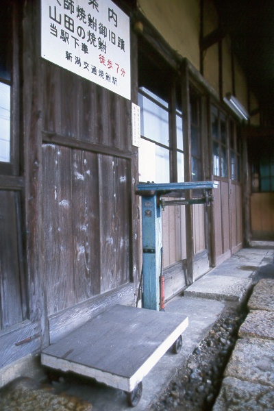 今も「焼鮒駅」に残る荷物用のはかり。戦後は好調だった貨物輸送のなごり。 | |