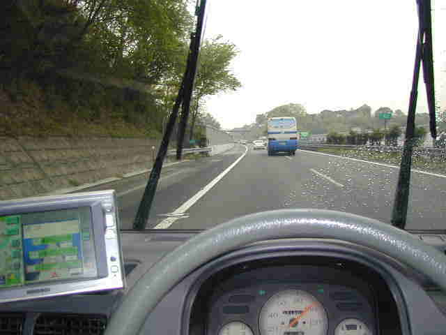 | 出ました!! 中国道 美祢IC を過ぎたあたりの上り坂で、時速50kmにまで落ちてしましました。高速道最低新記録です。 |