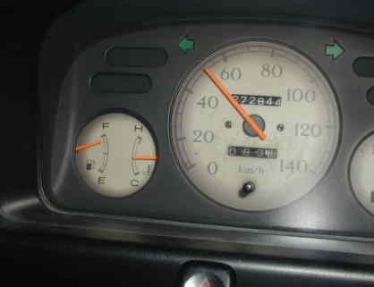 | もうこのサンバーは5年間で27万kmを越えています。エンジンのピストンも擦り減ってしまい、オイルが燃焼してしまっています。2〜300km走る度にエンジンオイルがすっからかんになってしまうので、その都度足していかないとエンジンが焼き付いてしまいます。まるで2ストロークエンジンみたいですね。 |