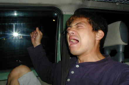 | 東京を出発して11時間あまり。さすがに疲れて眠くなってしまいました。 | ||
