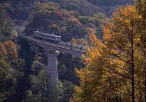 『撮影日記』のコーナーでも登場している山田努さんの作品です。これはおそらく中央本線の信濃境〜富士見間の橋梁だと思います。紅葉の写真は、逆光または半逆光で撮ると葉っぱが輝いてきれいです。山田さんはその鉄則通りに撮影され、とてもきれいな写真に仕上げることができたと思います。列車の位置も画面の真ん中ではなく左上に配置し、安定した構図が保てたと思います。列車に限らず、写真を写す際にその対象物は画面の真ん中に置いてしまうと、とても間抜けな写真になってしまいます。初心者はフレーム全体を見る余裕がなく、どうしても撮りたいものを画面の中心に持ってきがちです。落ち着いてファインダーをよく覗けば、メインとなるものを画面のどこに置けば良いかということが分かってくるはずです。 その点この写真は構図も露出も申し分なく、かなりレベルの高い作品だと思います。 |